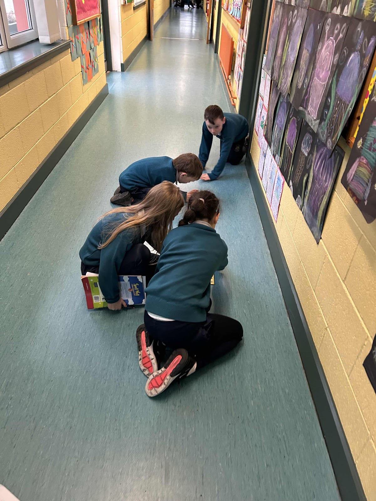 3rd Class enjoying using a meter stick to measure different places around the school today.