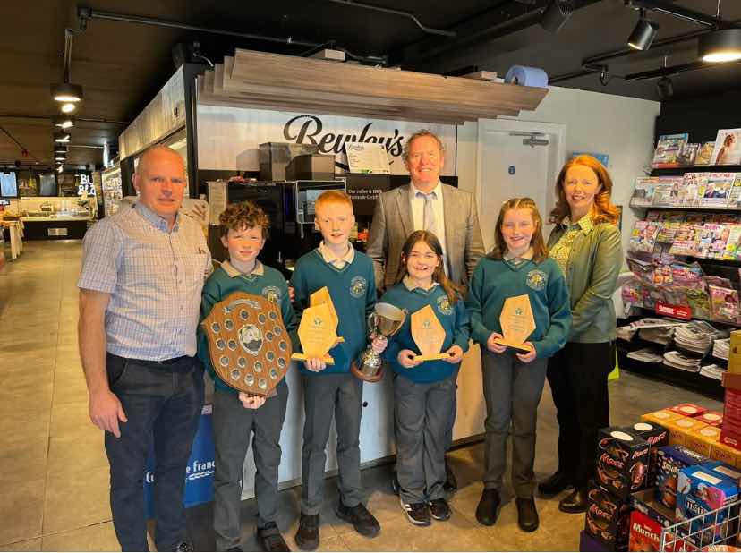 Today we marked a truly historic occasion in our school, as we celebrated the incredible success of our All Ireland winning U11 quiz team, joined by their family members, Chairperson of the Board of Management, CEO and staff of Rathmore & District Credit Union. Éabha, Conor, Diarmuid, Kayleigh and their mentor Ms. Anne Marie Murphy were praised for their hard work and dedication and indeed for the glory they have brought to HFNS. The pupils and staff are bursting with pride at their outstanding achievement. We all enjoyed this special event which was a fitting tribute to Ms. Murphy and her quiz team. It was full of celebration, inspiration and well deserved recognition.