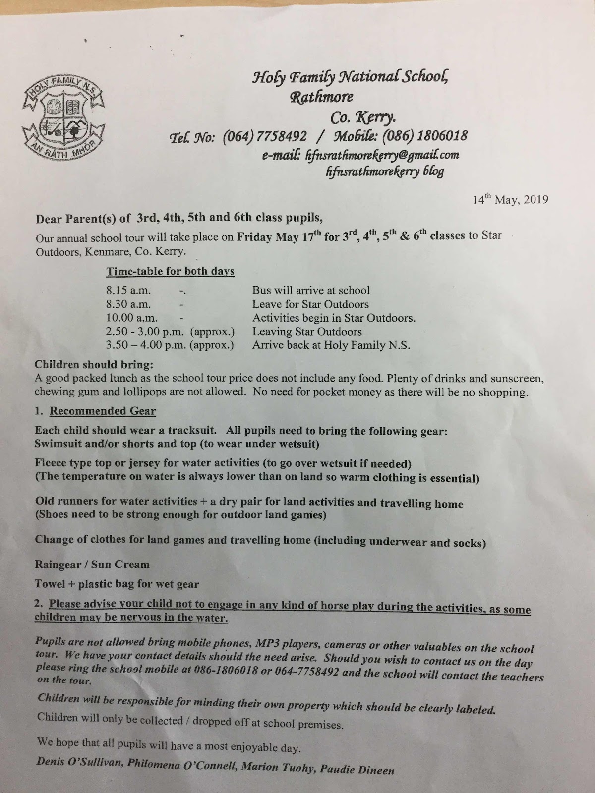 School Tour 3rd-6th Class Tomorrow ๐♀️ ๐ฃ
