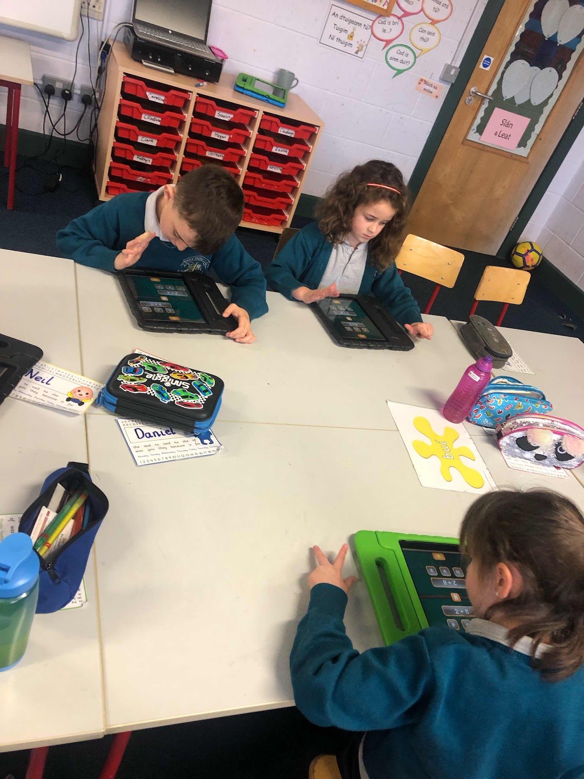 A great first week using our iPads in 1st Class. We used them in maths to practice our tables and we also started coding.