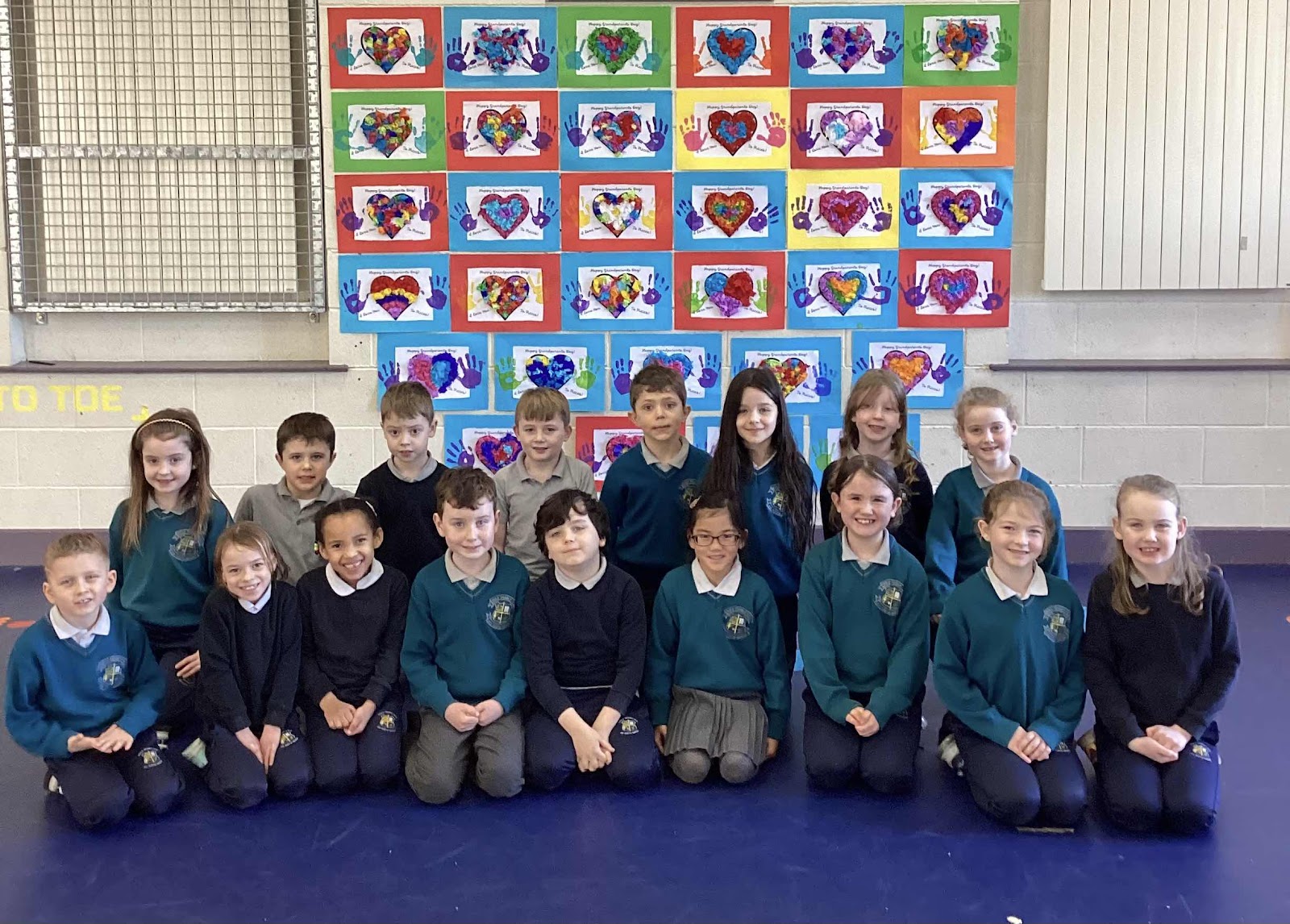 Some pupils from 1st Class with their artwork and thank you notes to their grandparents!